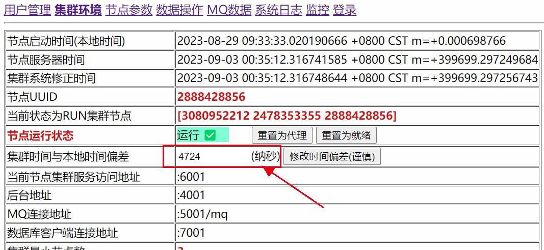 图中 4724ns 就是调整时间偏差的数据,表示该节点的时间是 系统时间+4724纳秒
