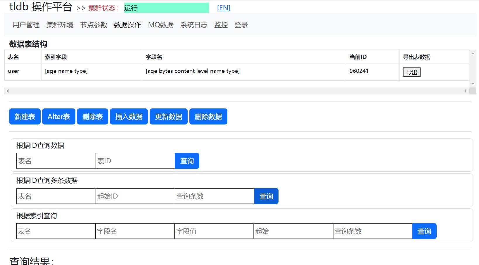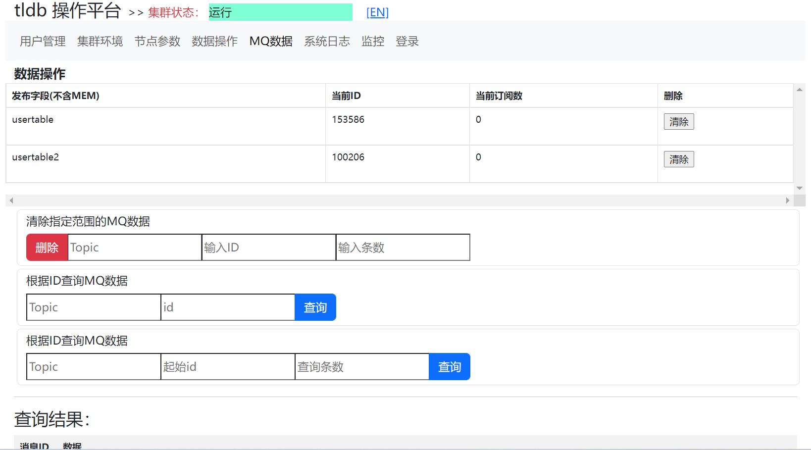 - MQ的客户端使用在《TLDB MQ客户端使用》《tldb数据库的java客户端如何使用》《如何使用tldb MQ》有比较详细的说明