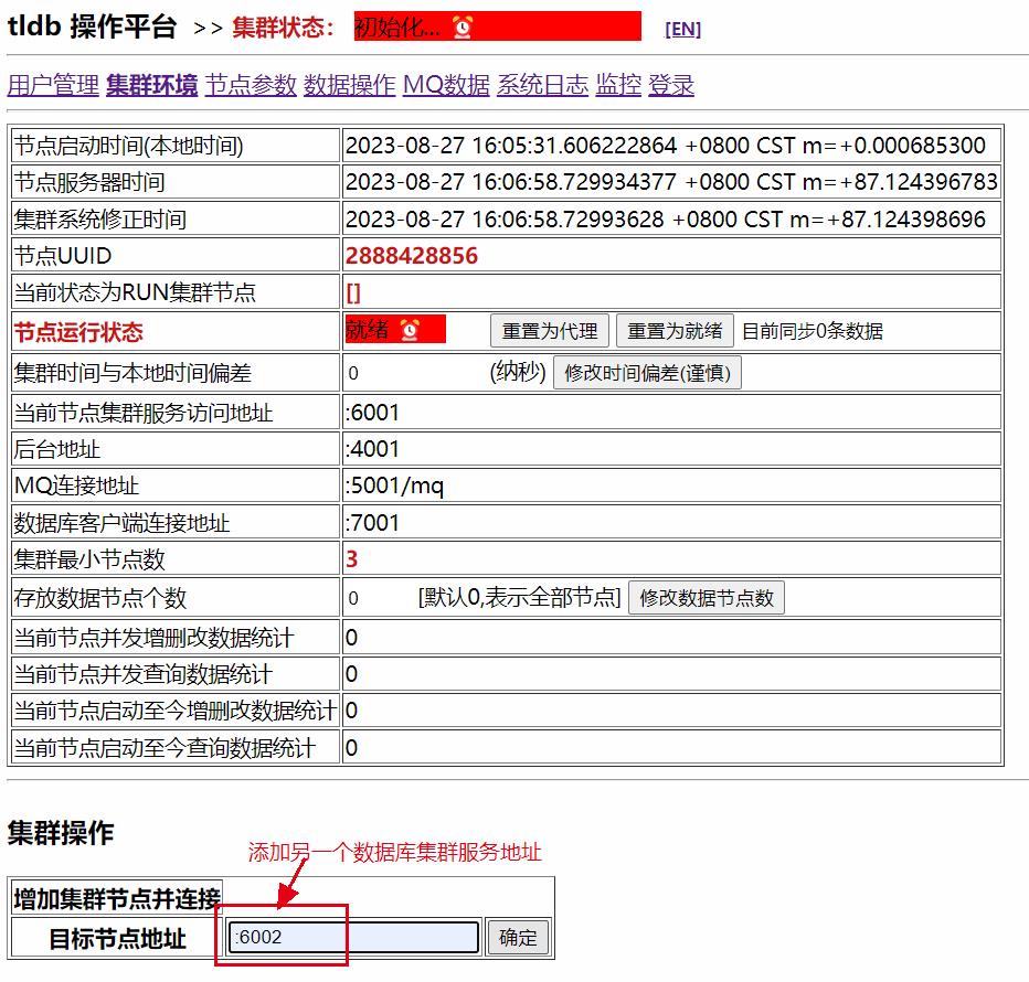 以上完成服务节点添加,等待集群节点完成同步即可,完成同步后,等待集群状态自动由初始化切换到运行,说明该集群可以进行数据操作了