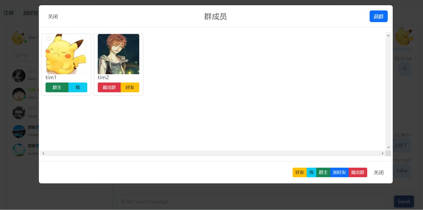 - 支持群组,对标QQ,微信等类型APP群组功能