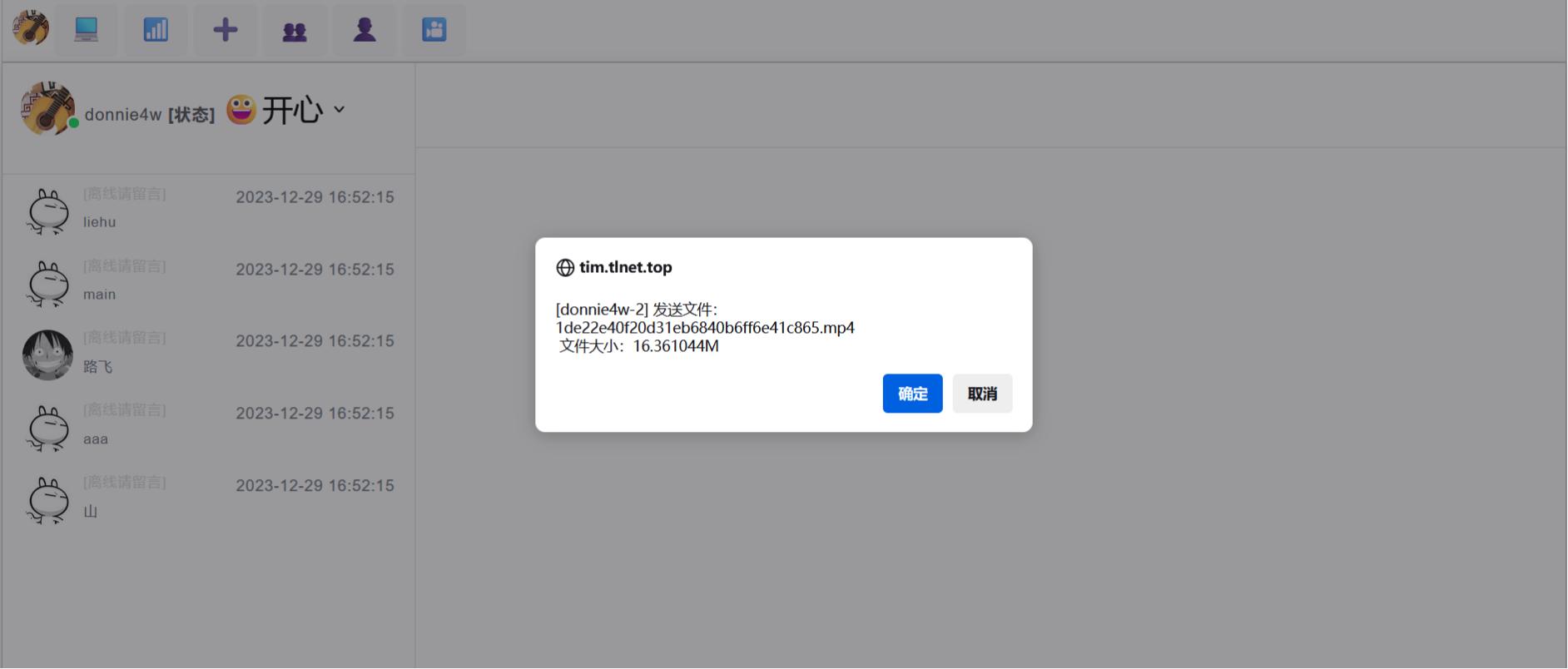说明:webtim的文件传输只是为了展示tim的流传输接口的用法而开发的简单传文件功能,没有实现断点续传,重传等共功能。