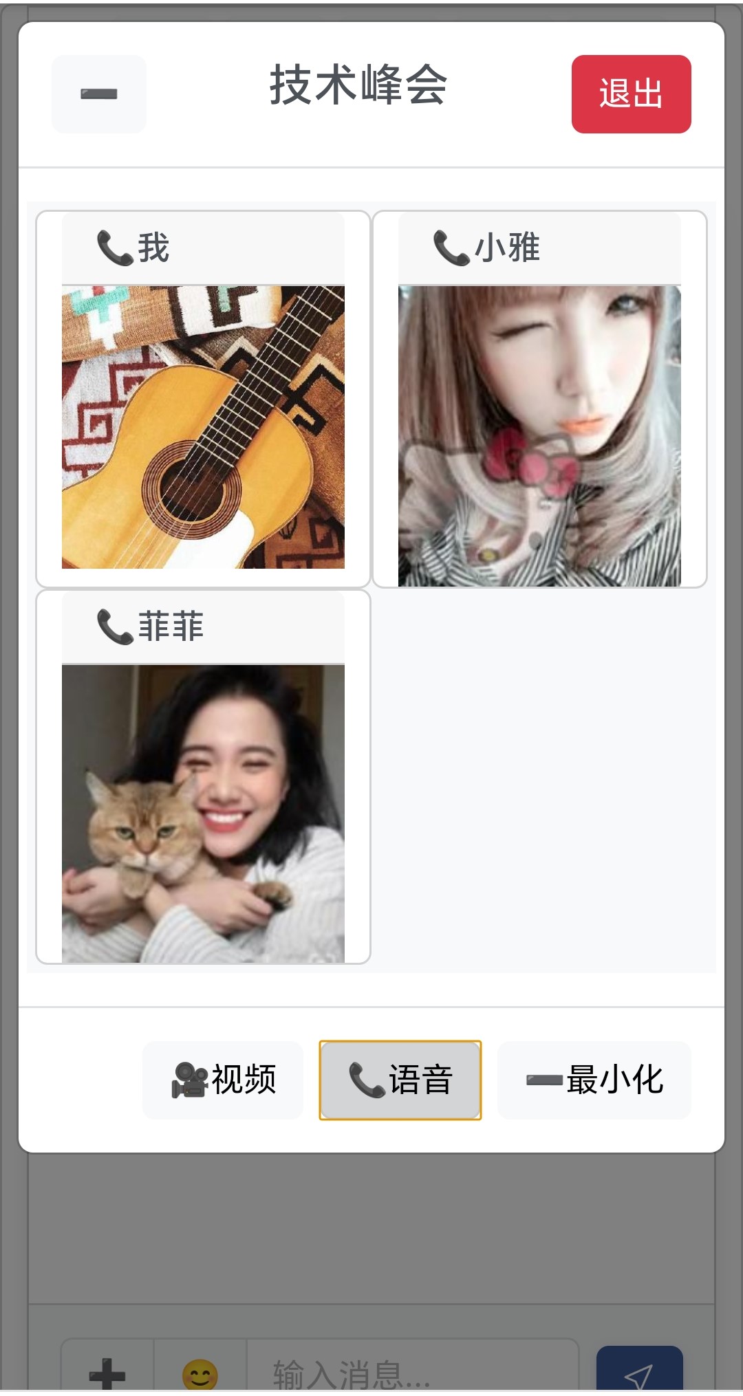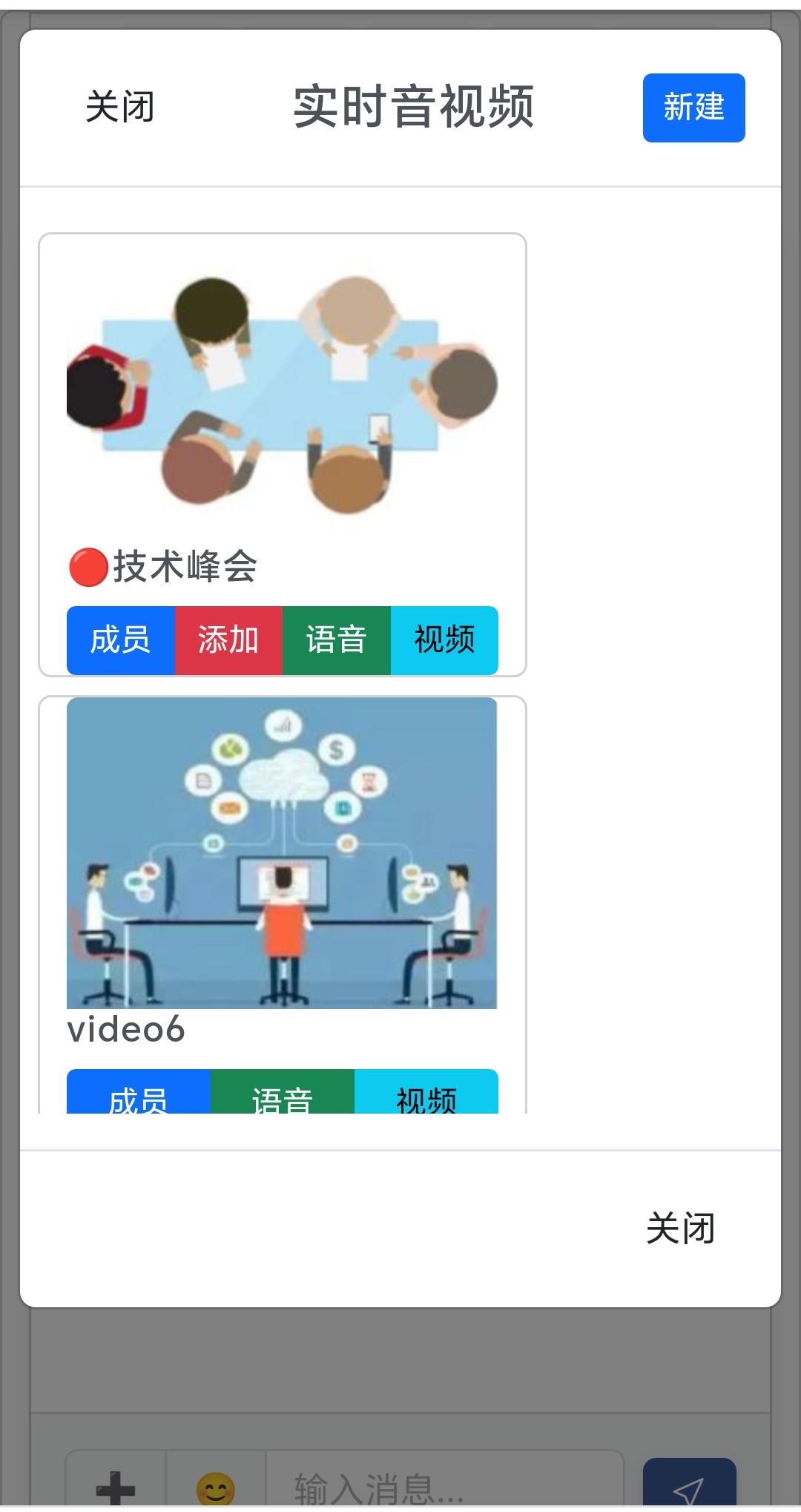 说明:”实时音视频对话“功能可以多人同时语音,多人同时视频,多人同时混合语音视频对话,也可以是听众或观众。webtim使用tim来实现音视频功能,可以灵活运用1:1,1:n,n:n的通讯模式,轻松实现音视频实时流各种业务要求。在webtim第二版本中实现的个人直播,视频直播,也是对tim流模式的运用。
