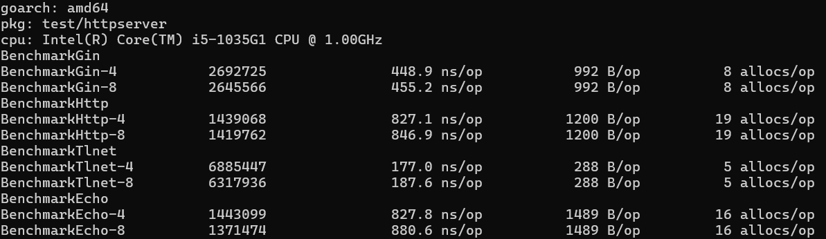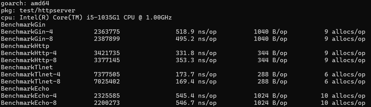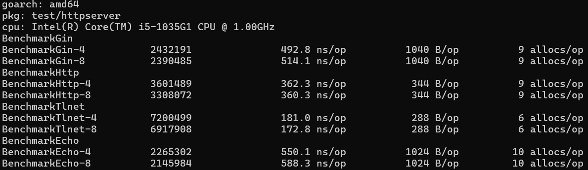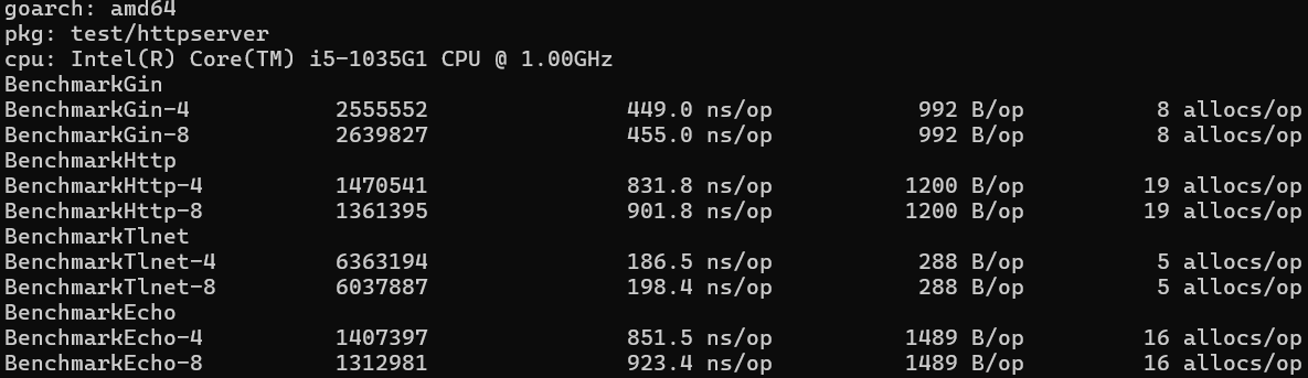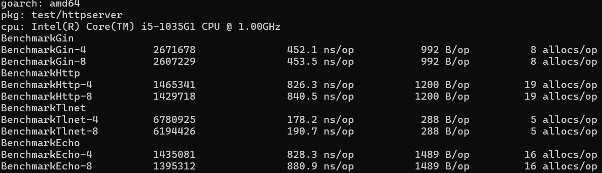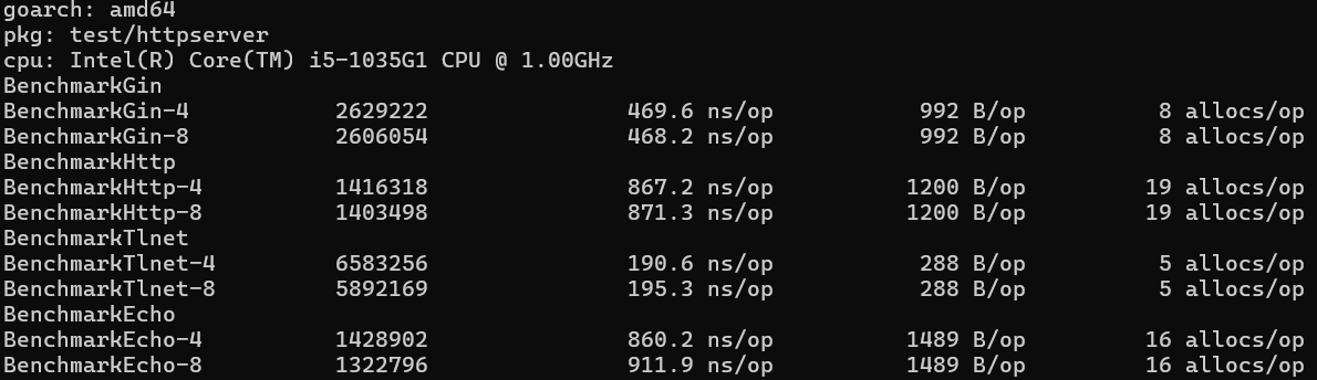 - Http(原生库):在 320 - 400ns/op 之间波动