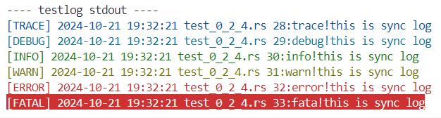 set_body_fmt 自定义输出日志内容。set_body_fmt 函数设置日志标识与时间格式set_body_fmt 设置不同日志级别输出不用颜色的日志fn testlog() {