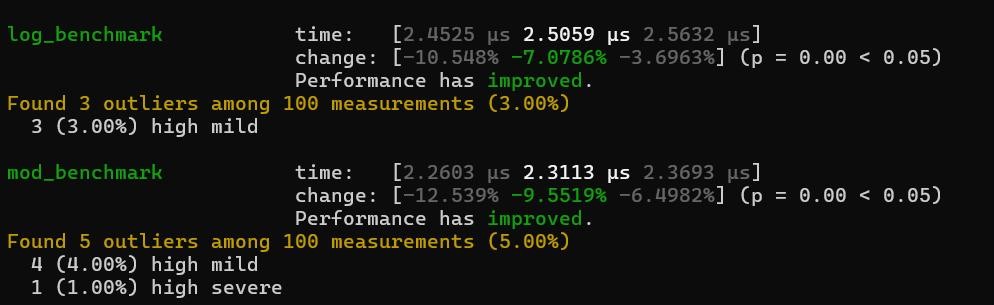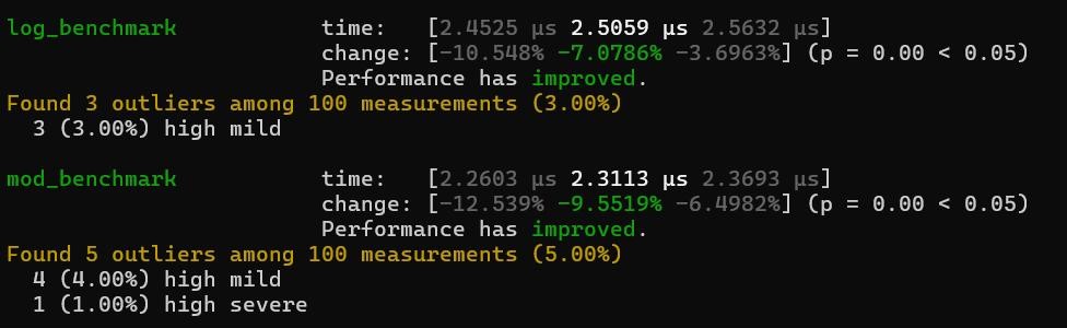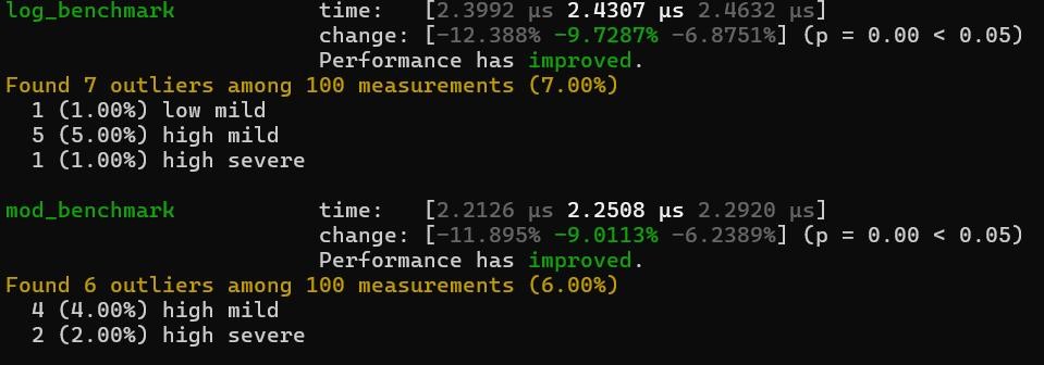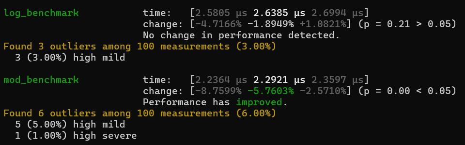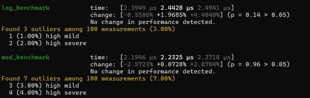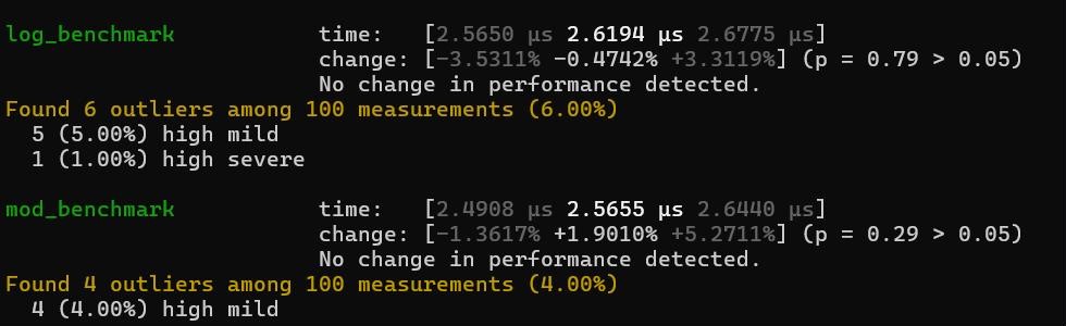 | 测试编号 | 最小时间 (µs) | 最大时间 (µs) | 平均时间 (µs) | 变化百分比 (%) | p 值 |
