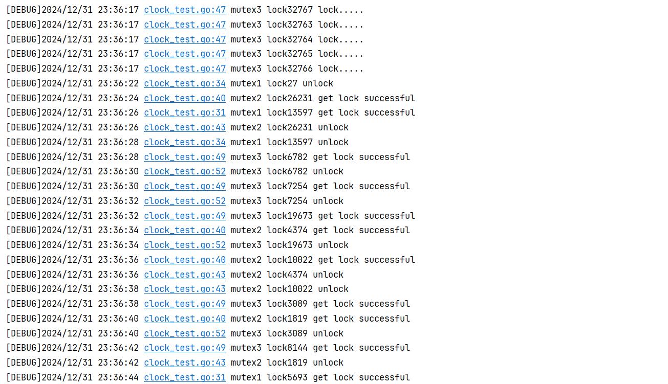 mutex3 = NewMutex(":20003", []string{"127.0.0.1:20001", "127.0.0.1:20002", "127.0.0.1:20003"})这样就完成了分布式锁管理器的创建,并可以直接获取各个自定义资源的分布式锁,这里的资源指的是字符串,比如 “test”