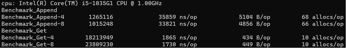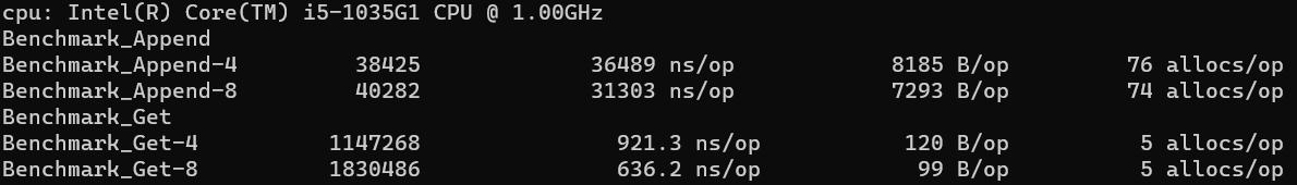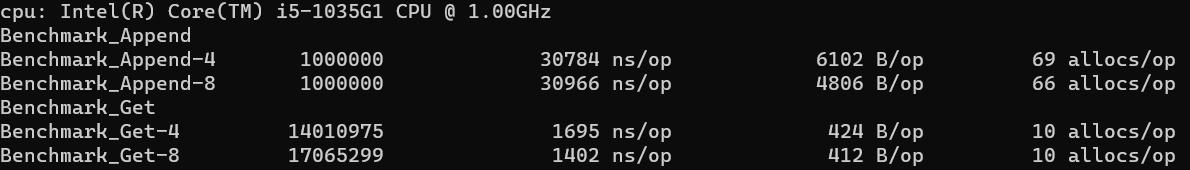 - Benchmark_Append-4 平均每秒执行的操作次数约为:1 / (35859 ns/operation) ≈ 27920次/s